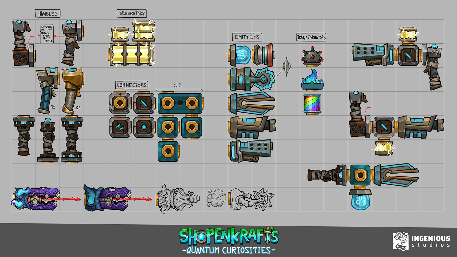 Customize your shop with different decoration styles to fit your personal favorite sci-fi vibe, or populate it with an array of interactive decorations to fidget with while waiting for your latest generator to bake. Once you have all your modules, you can assemble them into sleek futuristic weaponry or mash them together in ridiculous configurations that defy common sense.
